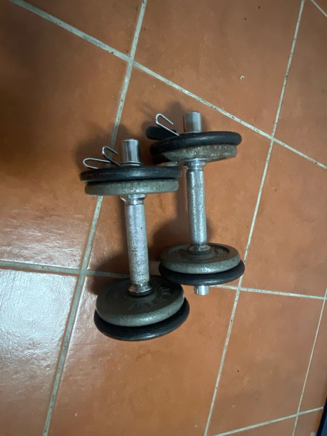 Dettagli del prodottoCoppia di manubri con dischi di peso regolabili. Ideale per allenarsi a casa.
