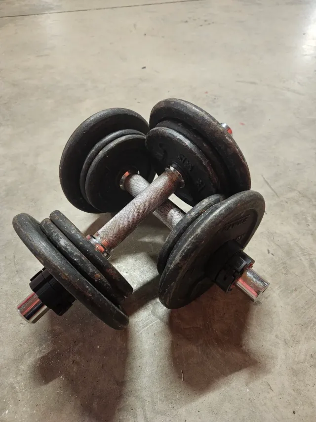 Dettagli del prodottoCoppia di manubri regolabili con dischi di peso. Manici testurizzati per una presa migliore. Dischi in ghisa. Chiusure di sicurezza per i dischi. Kit di 2 manubri composto da 8 dischi da 1 kg, 4 dischi da 2 kg e due barre da 2 kg ciascuna. Include due set di bloccatori per ogni manubrio. Peso massimo supportato dalla barra: 30 kg. La descrizione è stata tradotta automaticamente.