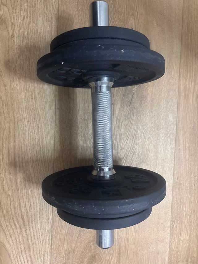 Dettagli del prodottoManubri da palestra con dischi di peso. - Dischi di peso neri. 4 dischi da 1kg e 2 dischi da 2kg - Barra con impugnatura testurizzata. La descrizione è stata tradotta automaticamente.