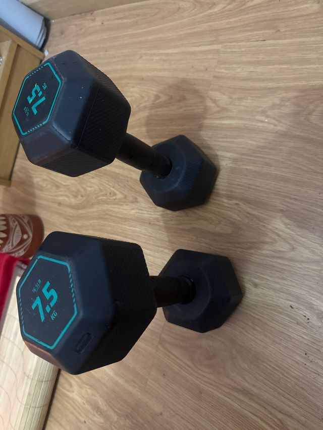 Dettagli del prodottoCoppia di manubri esagonali da 7,5 kg ciascuno. Ideali per allenamenti di forza. Design esagonale per evitare che rotolino. Impugnatura testurizzata per una presa sicura. Rivestimento protettivo per una maggiore durabilità. La descrizione è stata tradotta automaticamente.