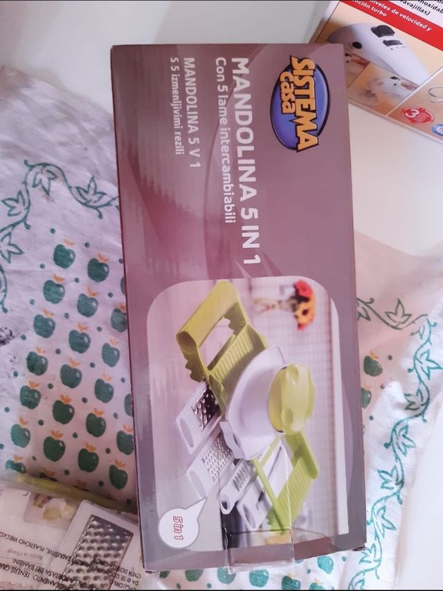 mandolina con 5 lame interscambiabili. è presente la scatola originale e tutti i pezzi.
