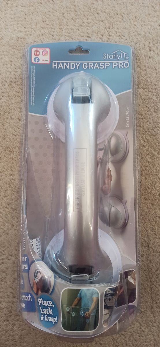 maniglia sostegno multifunzione. es per uscire dalla doccia o vasca,per lavare il tetto dell' auto ecc. Nuovo. caratteristiche in foto.