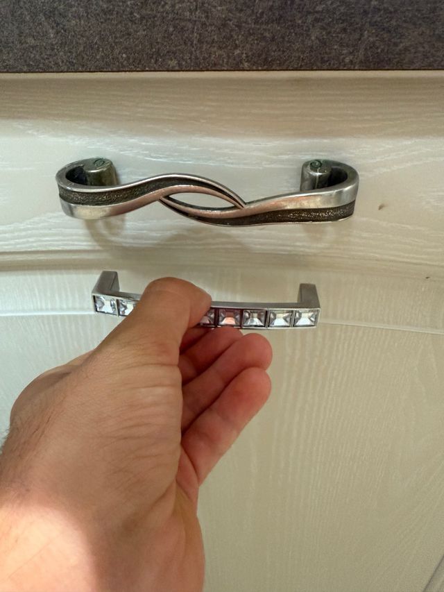 Dettagli del prodottovendo Bellissimi pomelli per cassetti, MAI USATI, vendo per errata misura d’acquisto. Perfetti per rinnovare la tua cucina! Sono realizzati in metallo con cristalli.