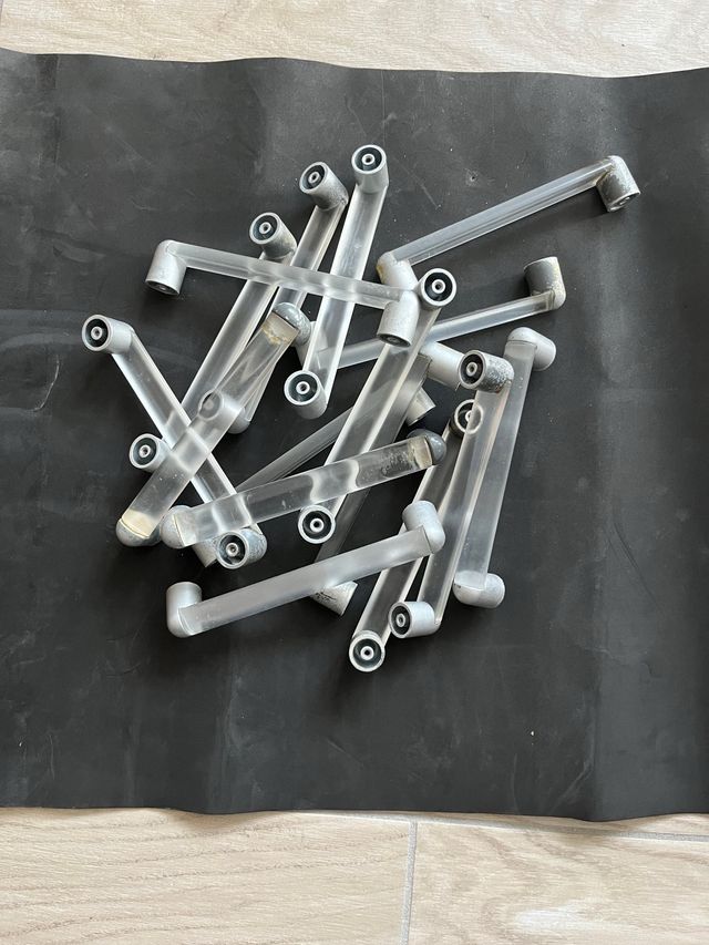 Maniglie per mobili in buone condizioni pesanti . N. 16 pezzi. distanza fori 16.3 cm.