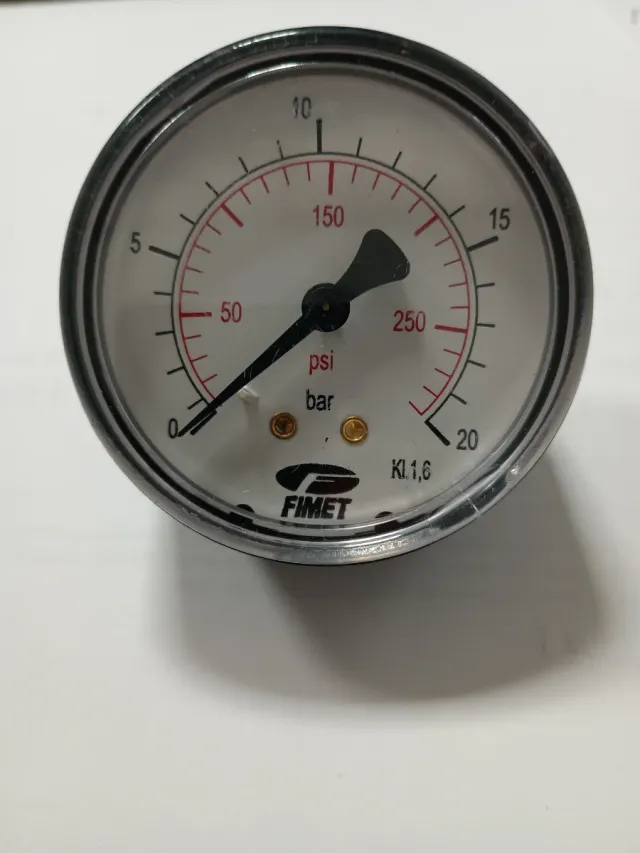 Manometro aria compressa 0-20 bar; 0-250psi. Nuovo e mai usato. Fimet. Quadrante 60mm.