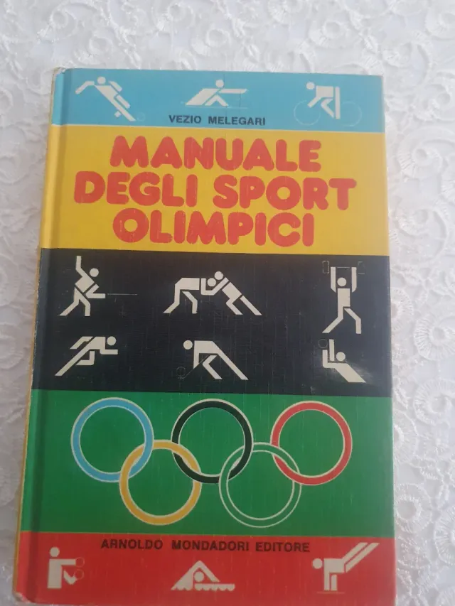 Libro Manuale degli Sport Olimpici di Vezio Melegari. - Copertina rigida. - Edito da Arnoldo Mondadori Editore. - Illustrazioni sportive.
