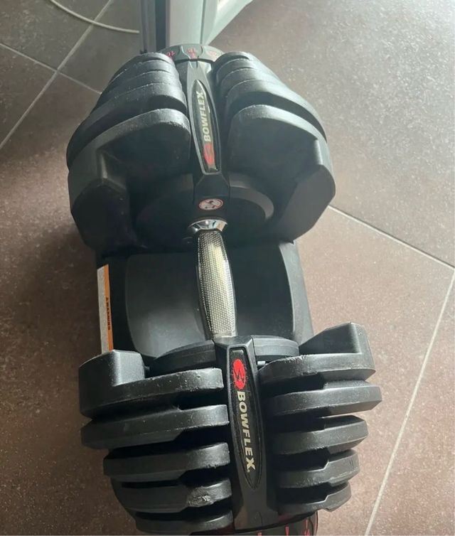Dettagli del prodottoCoppia di manubri Bowflex regolabili, ideali per allenamenti a casa.