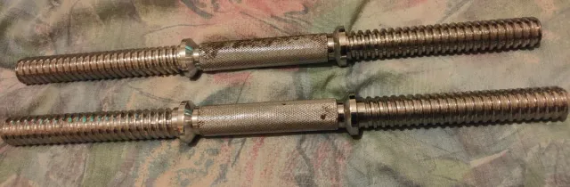 Dettagli del prodottoCoppia di manubri da palestra con filettatura per il fissaggio dei pesi.