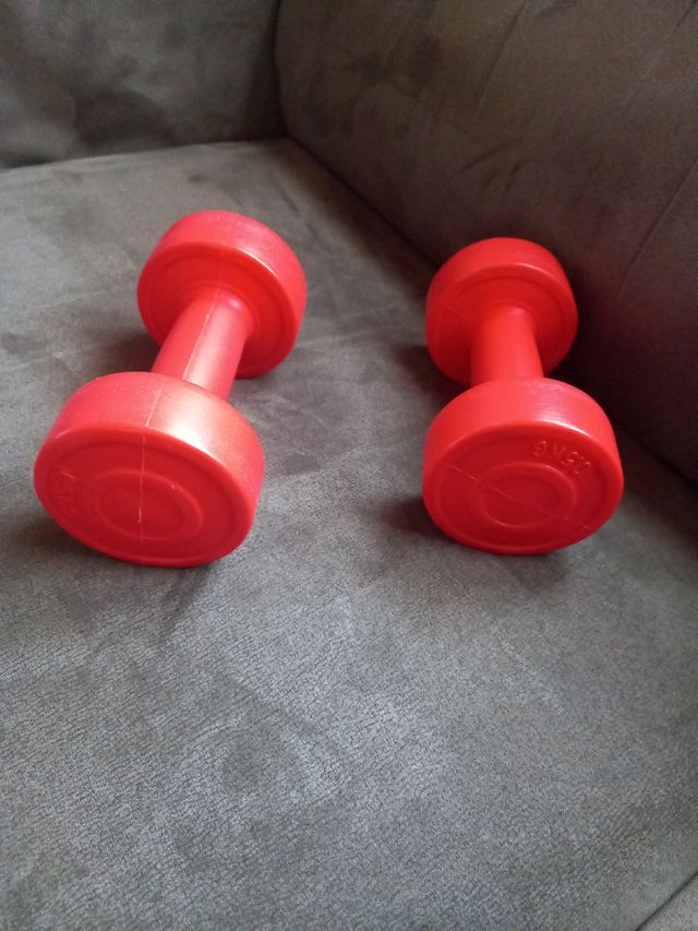 Coppia di manubri rossi da 0.50 kg ciascuno, ideali per esercizi di ginnastica e fitness. - Colore: Rosso - Materiale: Plastica