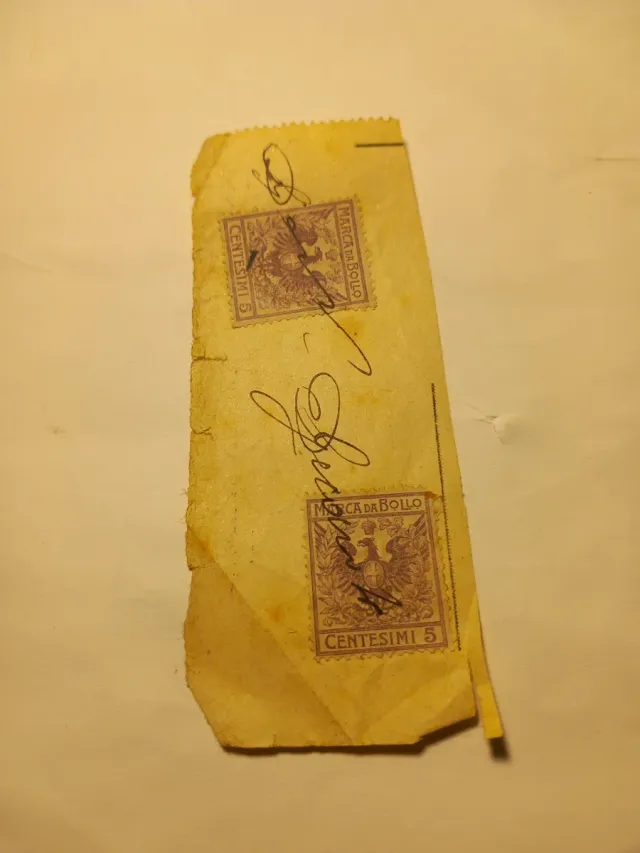 Due marche da bollo da 5 centesimi. - Raffigurano un'aquila. - Marca da Bollo scritto in alto. - Centesimi 5 scritto in basso.