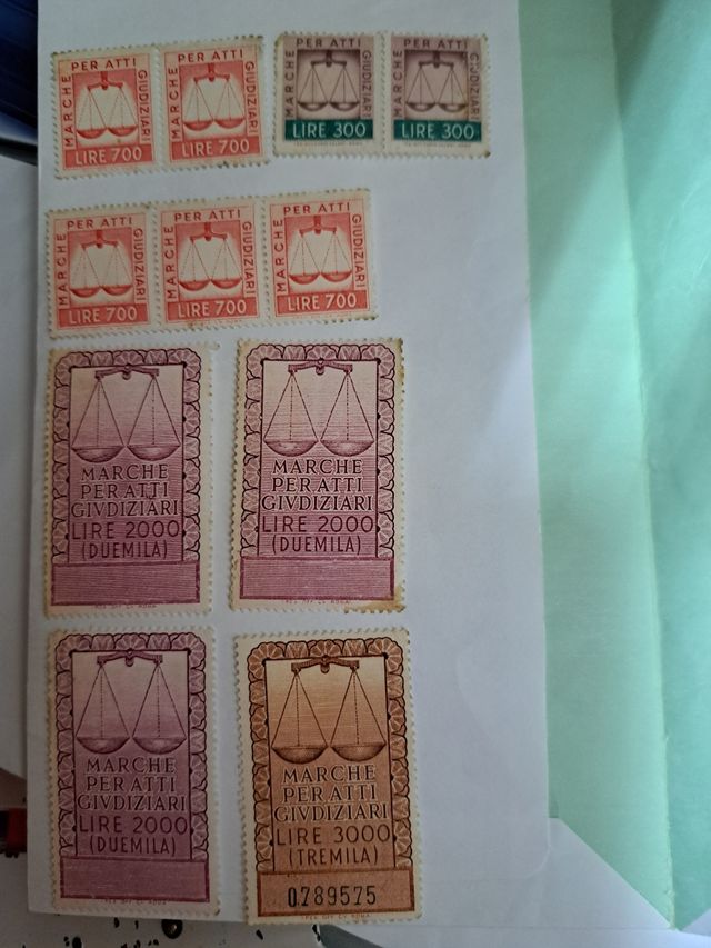Dettagli del prodottoLotto di marche giudiziarie con diverse denominazioni.