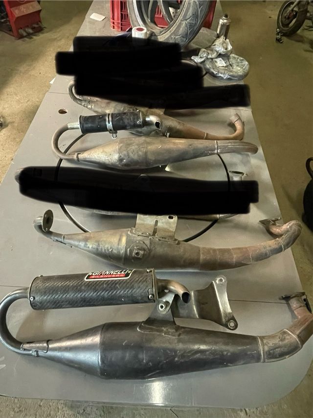 Dettagli del prodottoSet di 8 marmitte usate per motori Minarelli e Piaggio. Sono in buone condizioni, anche se mostrano segni di usura dovuti all'utilizzo.
