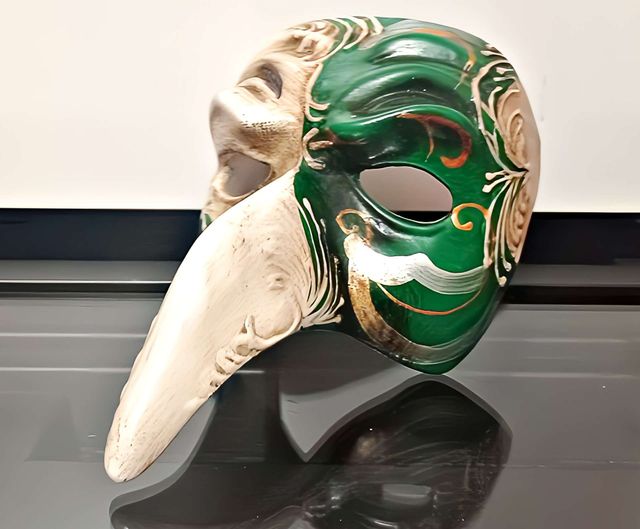Dettagli del prodottoMaschera veneziana in ceramica piccola, realizzata e dipinta a mano. Ideale per decorare, con un piccolo foro e un cordino per appenderla. Portatami personalmente da Venezia 15 anni fa. Dimensioni: 13 cm dalla punta del naso alla parte posteriore. La descrizione è stata tradotta automaticamente.