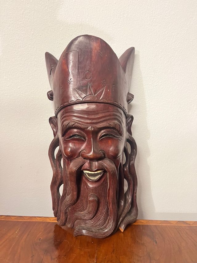 Dettagli del prodottoMaschera in legno orientale, realizzata nel 1960. Con sbeccatura alla base destra Misure del prodotto