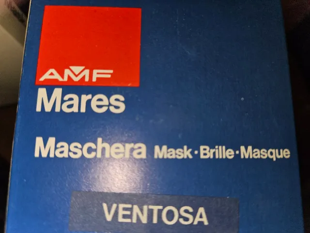 Maschera Mares vintage, modello Ventosa. - Logo AMF Mares. - Scritta Maschera Mask Brille Masque.