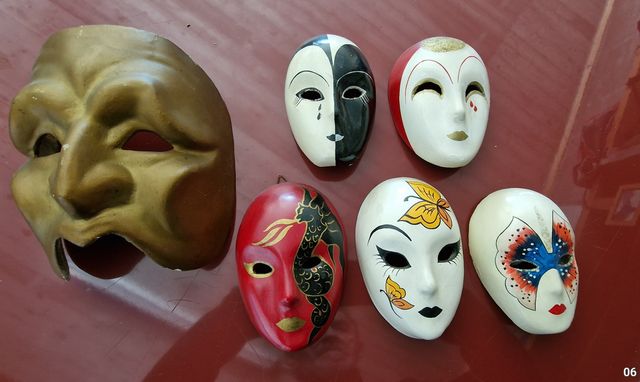 6 hermosas máscaras de carnaval venecianas pintadas a mano.