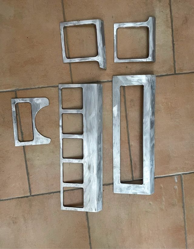 Set di mascherine per cruscotto jeep Wrangler YJ - Materiale metallico. - Diverse forme e dimensioni per varie parti del cruscotto.