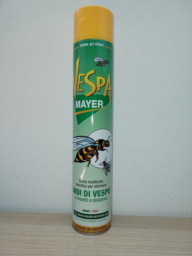 Dettagli del prodottoSpray insetticida Mayer Braun Super Jet, specifico per eliminare nidi di vespe e insetti volanti. Azione istantanea. Formato da 750 ml. - Elimina efficacemente vespe e insetti. - Formato: 750 ml. - Prodotto nuovo, in confezione originale.