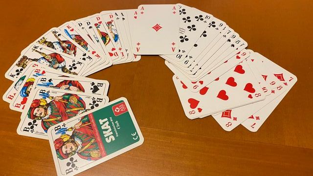 Dettagli del prodottoMazzo di 32 carte da gioco Skat, con il classico disegno tedesco o francese.