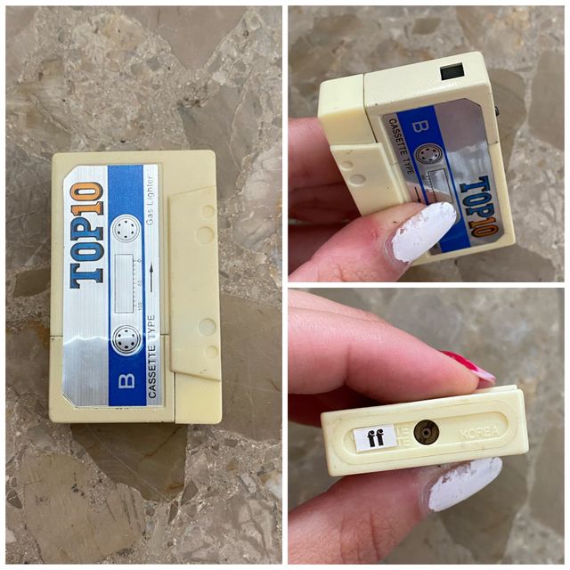 Dettagli del prodottoAccendino a gas con design retrò a nastro cassette. Ho una collezione antica di accendini. Non sono stati usati personalmente, ma esposti in vetrina. Modello Top 10. Stile vintage. Prodotto in Corea. La descrizione è stata tradotta automaticamente.