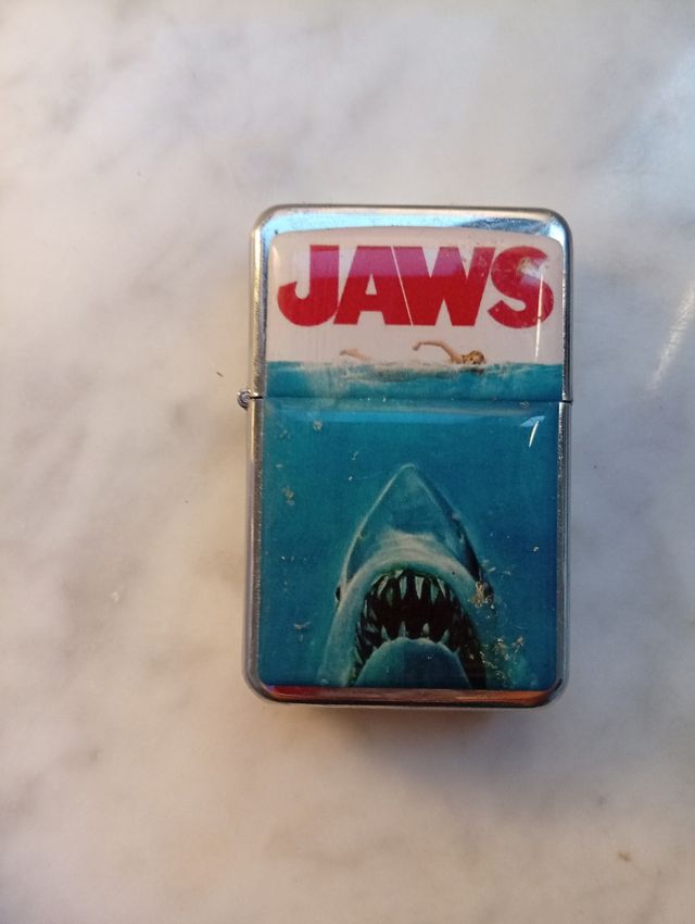 Accendini con design ispirato al film Tiburón (Lo squalo). - Stile Zippo. - Design a forma di squalo e nuotatore