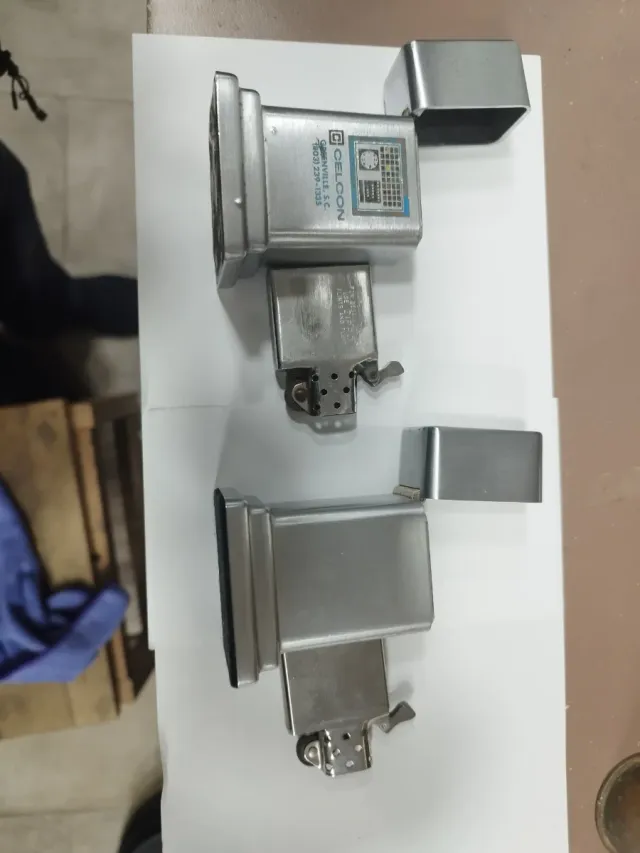 Dettagli del prodottoDue accendini da tavolo Zippo, modello Barkrof. Sono in metallo argentato e hanno il coperchio aperto. Come si vede in foto, uno è pubblicitario e richiede l'incollaggio del coperchio. Bisogna caricare con pietra e benzina. Ascolto offerte LOGICHE. - Design metallico. - Coperchio ribaltabile. La descrizione è stata tradotta automaticamente.