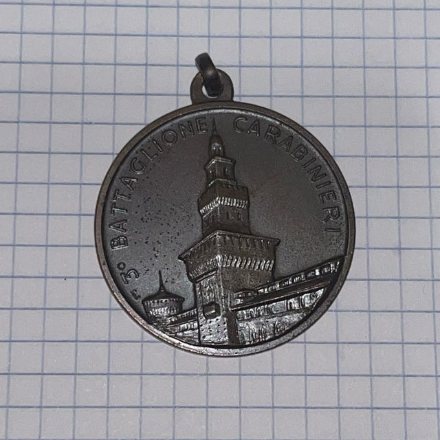 Medaglia commemorativa del 3° Battaglione Carabinieri. - Raffigurazione di un edificio storico. - Testo 3° BATTAGLIONE CARABINIERI inciso sul bordo.