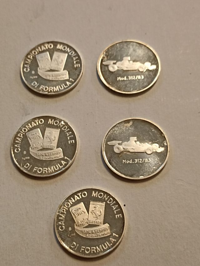 5 medaglie in argento 986 fondo specchio emesse dalla zecca italiana nel 1974. perfette