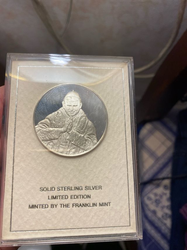 Dettagli del prodottomedaglia commemorativa di grande interesse storico e devozionale, dedicata all'elezione di Papa Giovanni Paolo II. È realizzata in argento sterling massiccio (Solid Sterling Silver), ovvero argento con una purezza del 92,5%.