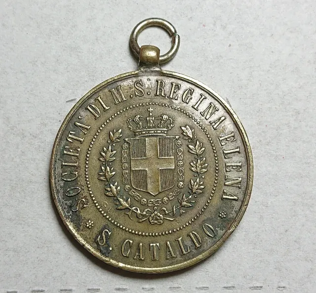 Medaglia Società di Mutuo Soccorso Regina Elena San Cataldo Caltanissetta Sicilia Fine '800 diametro 30mm Rara