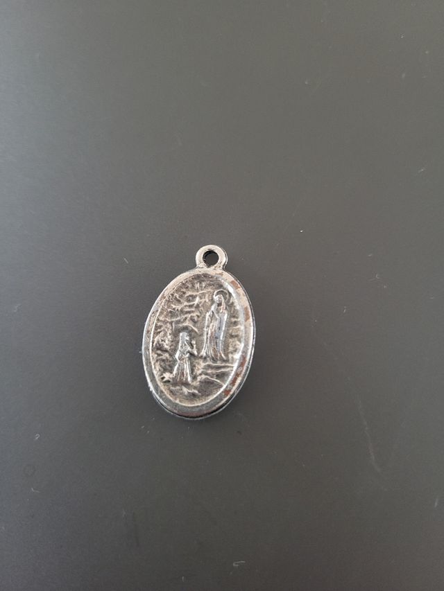 Bellissima medaglietta raffigurante l'apparizione di Lourdes. - Oggetto da collezione - Perfetta per chi ama i souvenir religiosi - In metallo argentato