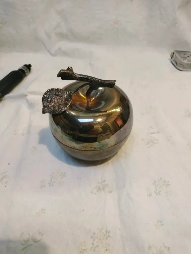 Elegante portaoggetti a forma di mela, con finitura simile all'argento. - Design a forma di mela. - Dettagli con rametto e foglia. - Finitura lucida color argento.