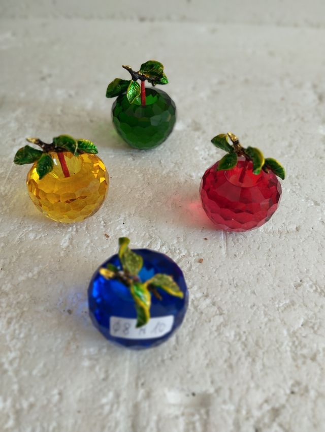 COLORATE E LUMINOSE, 4 MELE IN CRISTALLO CON COLORI SPETTACOLARE. VENDUTE IN LOTTO