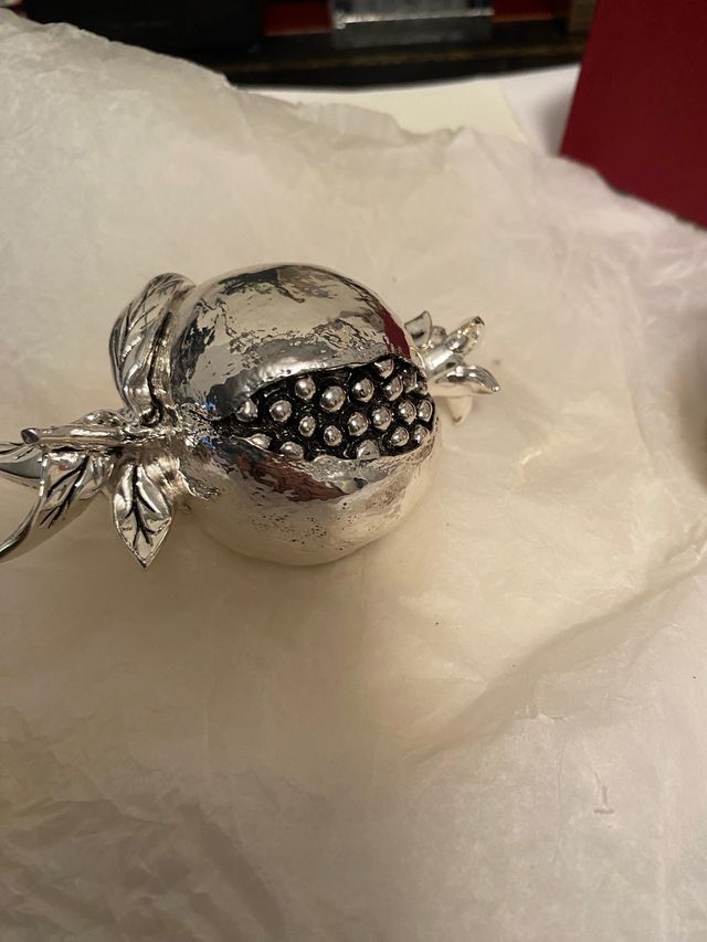 Melograno in resina laminata argento . Purtroppo …mancano tre petali alla base come si vede in foto ultima