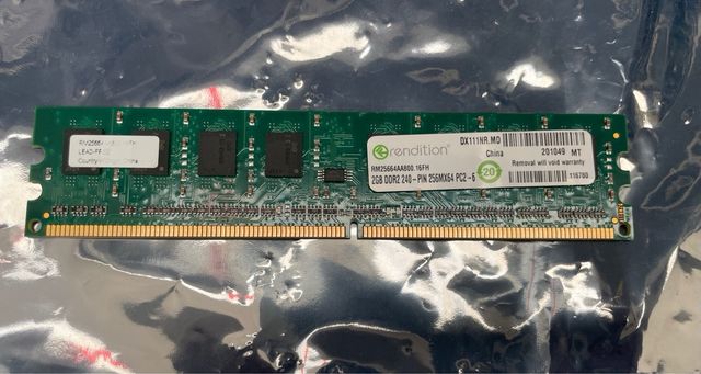 Vendo memoria Ram DDR2 Rendition 2Gb 240p PC800MHz funzionante. Viene venduto con la formula visto e piaciuto e non si fornisce la garanzia.