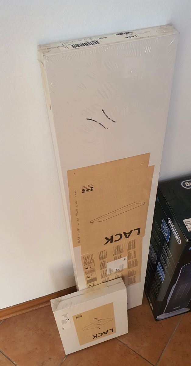 Dettagli del prodottoDue mensole bianche NUOVE, ancora con il cellophane. Sono mensole Ikea della linea LACK. Le misure sono quelle delle foto, una più lunga l'altra piu piccola (va bene anche comodino sospeso). Per maggiori info contattatemi. Misure del prodotto