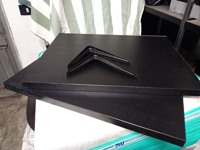 Vendo set di 2 mensole in legno con supporti da attaccare al muro Misure 60 cm di lunghezza x 45 cm di altezza e 3 cm di spessore