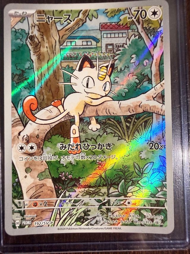 Carta promo giapponese di Meowth, numero 192/SV-P. - Illustrazione di Uninori.