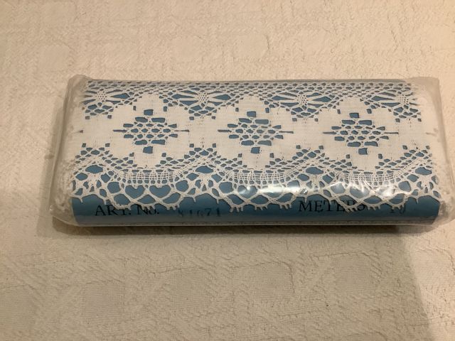 Confezione integra di merletto per bordature di tovaglie, lenzuola, asciugamani…. Altezza 9 cm Lunghezza 10 metri