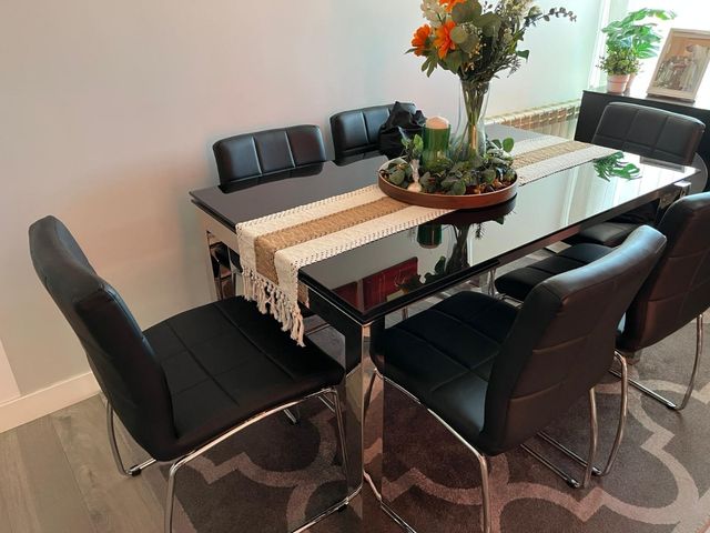 Tavolo da pranzo e 6 sedie allungabili fino a 1,80