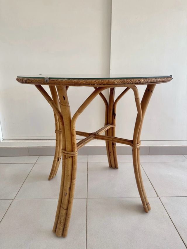 Tavolo vintage in bambù e vimini fatto a mano