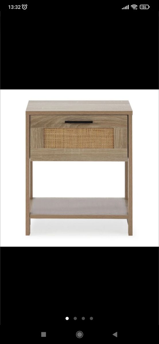 Dettagli del prodottoVendo 2 comodini insieme (nuovi senza estrarli dalla scatola) con un cassetto e uno spazio per riporre tutti i tipi di oggetti di cui abbiamo bisogno nella nostra vita quotidiana. Frontale del cassetto in rattan naturale con maniglia in metallo nero opaco.