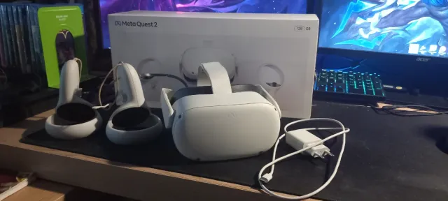 Visore per realtà virtuale Meta Quest 2 con 128GB di memoria. - Include visore VR. - Include controller. - Include cavo di alimentazione.