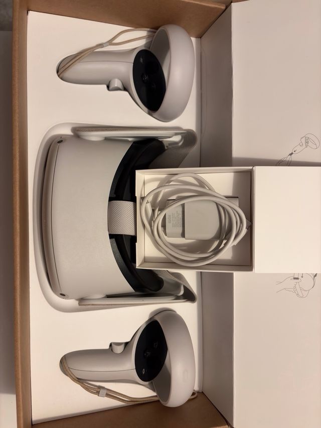 Dettagli del prodottoOcchiali VR Meta Quest 2 con 128GB di spazio di archiviazione. - Include controller, caricabatterie e adattatore per occhiali - Utilizzo minimo La descrizione è stata tradotta automaticamente.