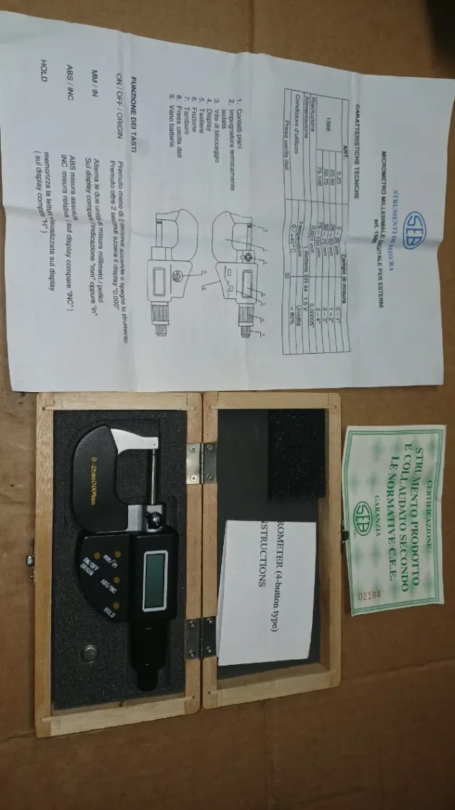 Dettagli del prodottoMicrometro millesimale digitale SEB, ideale per misurazioni esterne precise.