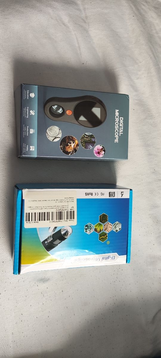 Dettagli del prodottoVendo due microscopi digitali. Uno è portatile con schermo integrato, l'altro è di tipo USB con base. Entrambi sono nuovi