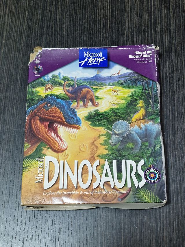 Scatola con CD-ROM di DINOSAURS 1995 di Microsoft Home.