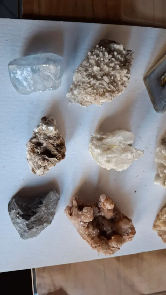 Lotto di minerali per collezionisti. - Cristalli trasparenti e azzurrati. - Formazioni rocciose con cristalli. - Minerali grezzi di varie dimensioni e colori.