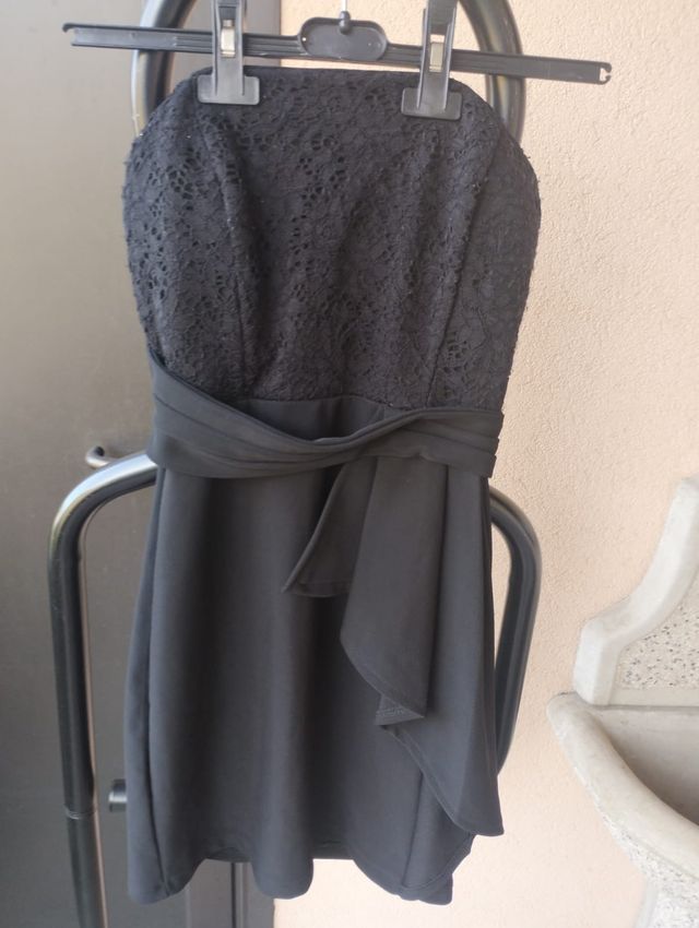 Mini abito nero pizzo fiocco taglia S