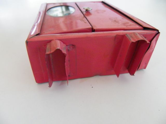 Dettagli del prodottoCurioso giocattolo antico di circa 100 anni in latta, fatto a mano, un pezzo unico ideale per i collezionisti. È di colore rosa e ha uno specchio sulla porta.